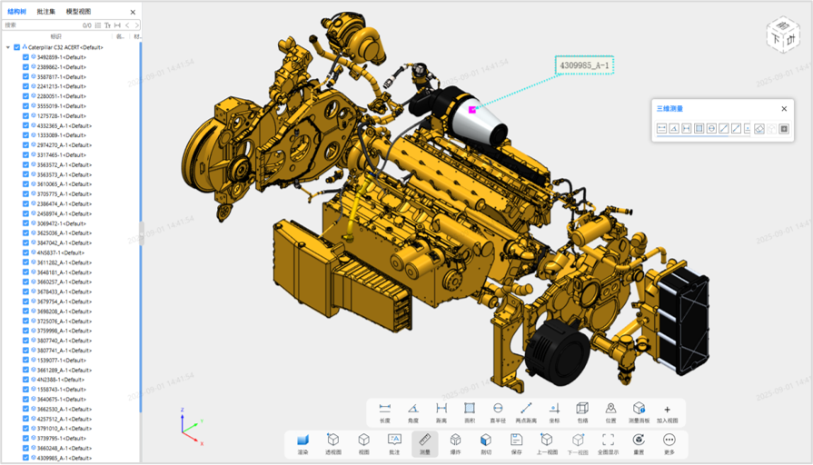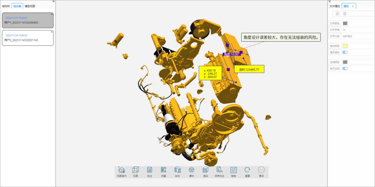 针对轻量化完成的模型,iVUE轻量化平台提供模型测量、模型剖切、模型爆炸等各类数据使用方式,提供增加批注圈阅内容、添加标签序号、BOM结构导出等协作功能,满足企业在产品设计、制造、销售、服务、外协等业务环节的各类轻量化数据使用和协作协同需求。