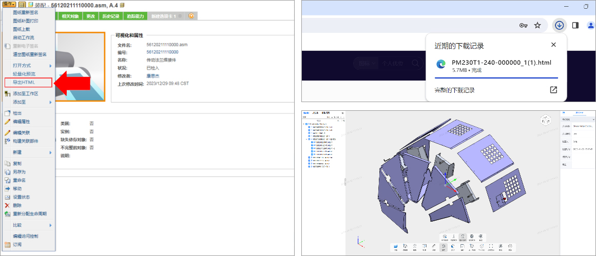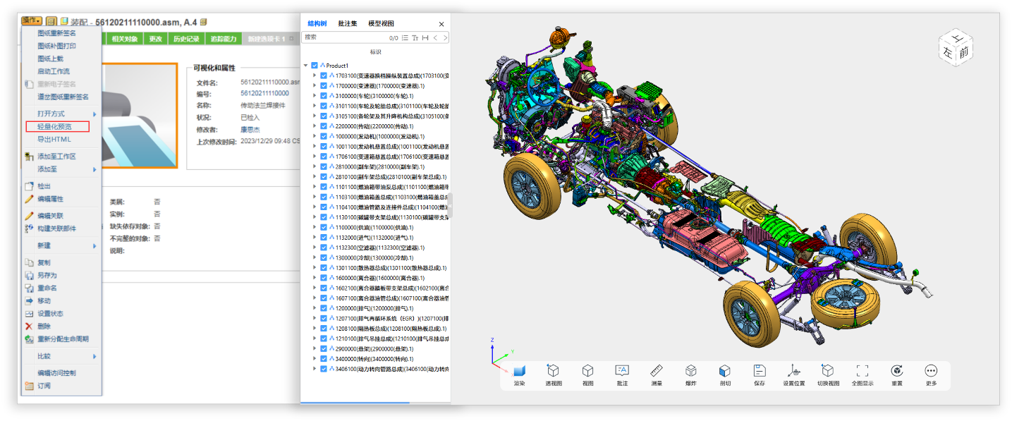(基于WindChill的轻量化浏览功能入口及效果图示)