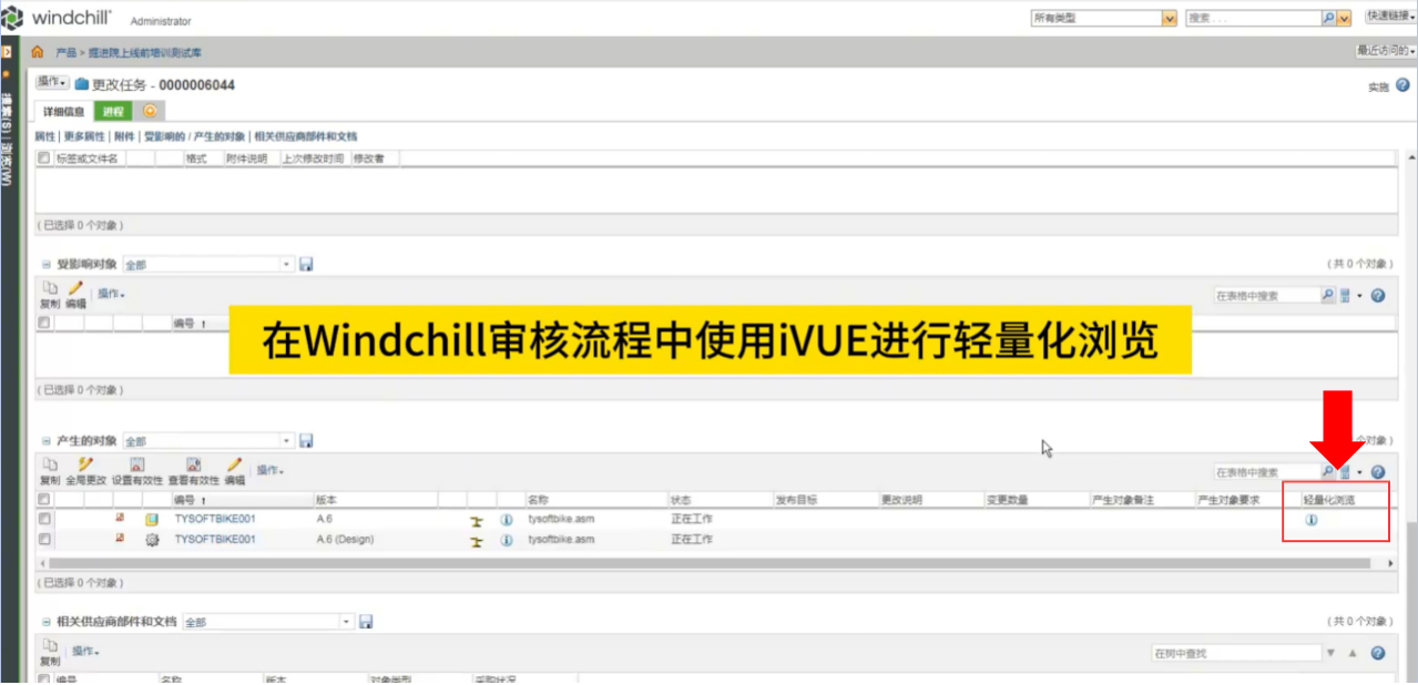 (嵌入WindChill审核流程的轻量化浏览功能入口图示)