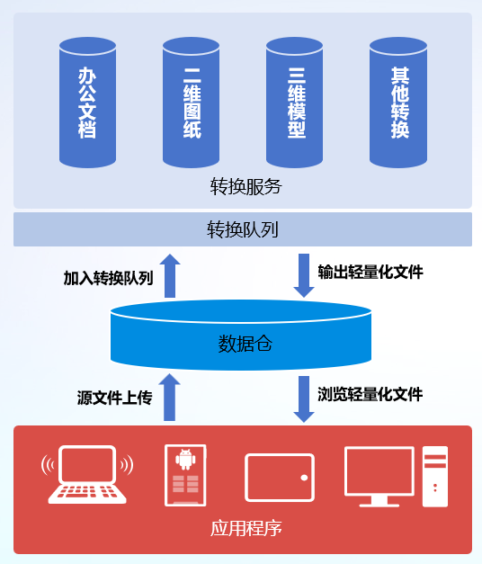 - 转换服务将转换后的轻量化文件回传至数据仓;