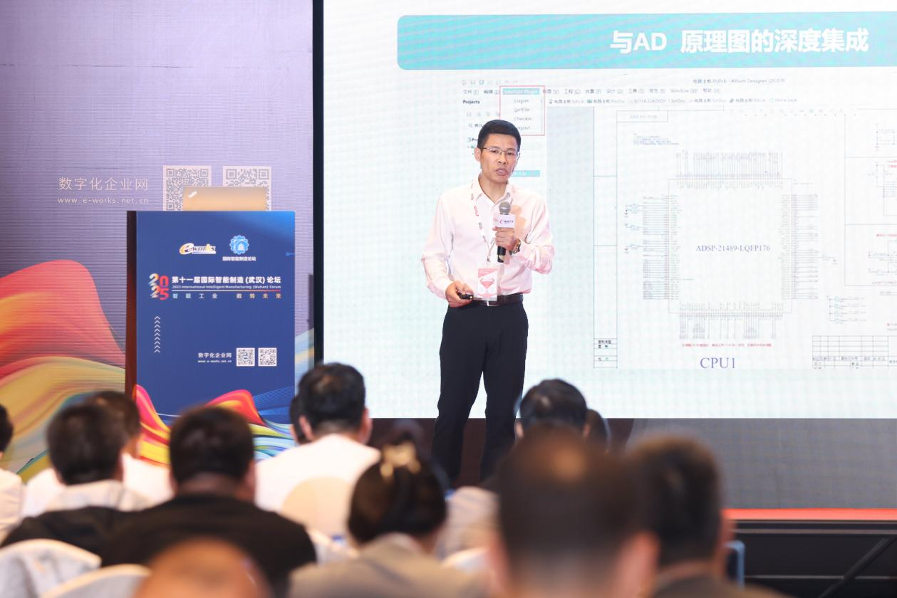 天喻软件总经理刘清华博士在论坛发表《天喻IntePLM高科电子解决方案及典型案例分享》主题演讲,系统介绍了基于天喻自主研发全生命周期管理系统IntePLM构建的高科电子解决方案,实现了需求牵引研发立项、任务驱动的协同设计和面向订单的配置化管理,通过深度集成ECAD技术实现电子数据秒级入库与电子BOM自动生成,结合MCAD快速搭建结构BOM,并以零部件为枢纽构建全域数据关联网络;其机电协同引擎支持结构部分与电子部分的协同设计,支持实时干涉检查,从源头尽早消除结构设计与电路板或电气部件的干涉。演讲还结合行业典型案例讲述了天喻高科电子解决方案在企业的具体落地,为行业用户提供可借鉴的数字化转型路径,引发与会专家高度关注。目前该解决方案已在国企央企、科研院所、高科技电子、新能源汽车等行业数百家企业深入应用,天喻软件多年来在PLM领域深厚的技术研究和丰富的应用实践给观众留下了深刻的印象。