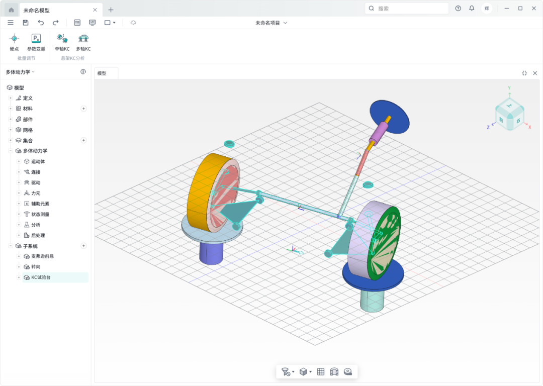 Magicsim车辆动力学模块的脱颖而出,源于其作为新一代端云协同仿真平台的核心优势。本产品是一款基于多体动力学的车辆建模与仿真软件,能够基于硬点、参数建立参数化的悬架、转向等底盘系统模型,并进行KC、操稳等工况的车辆动力学仿真。相对于传统车辆动力学软件,本产品具备更加灵活的子系统封装功能,将考虑接触摩擦等元素的高精度多体模型封装成子系统,能够有效提高动力总成传动系统和制动系统等子系统的模型精度;内置考虑电机、电池、电控的纯电动力总成模板,求解器纵向控制器考虑能量管理和动力分配,能够拓展新能源车型的动态性能仿真场景。