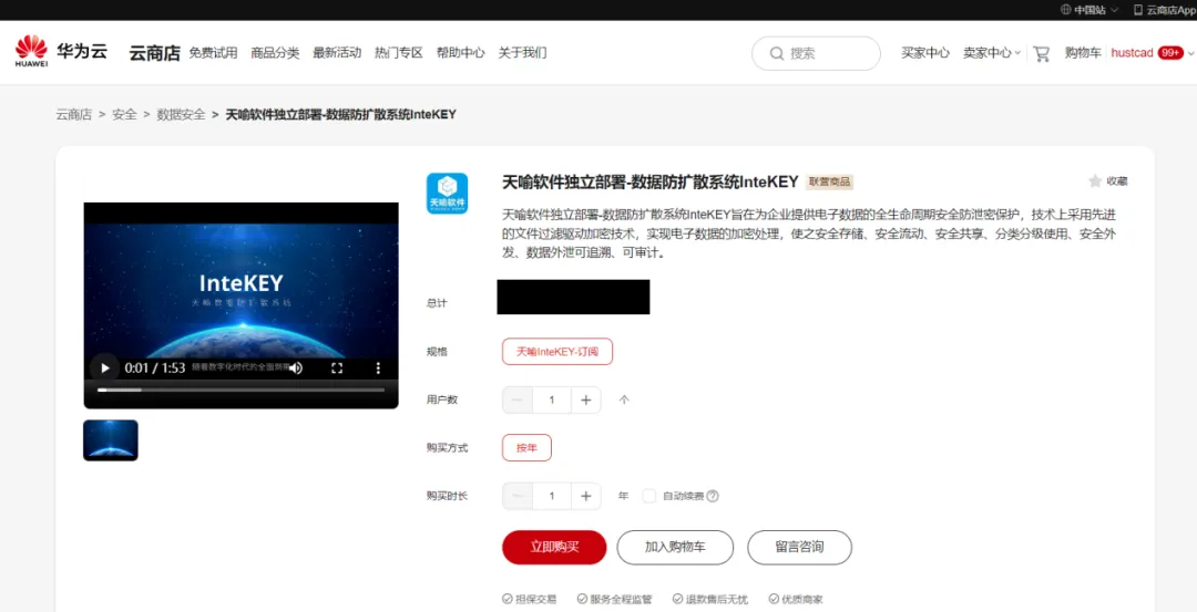 2025年,我们与华为云达成深度合作,数据安全产品天喻数据防扩散系统InteKEY也通过了华为云的严选商品认证,目前已正式上架华为云商店,成为华为云的联营商品,这是继天喻产品全生命周期IntePLM和天喻三维可视化系统InteVUE之后的又一款核心产品,华为云联营商品的上架,标志着天喻产品的安全性、专业性受到了华为云的充分认可。